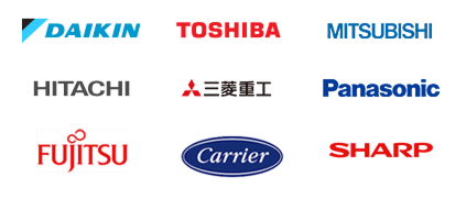 ダイキン、三菱電機、日立、パナソニック、三菱重工、日本キヤリア(旧・東芝)、富士通ゼネラル、シャープ、日本ピーマックなど、古い型から最新機種まで対応可能です。